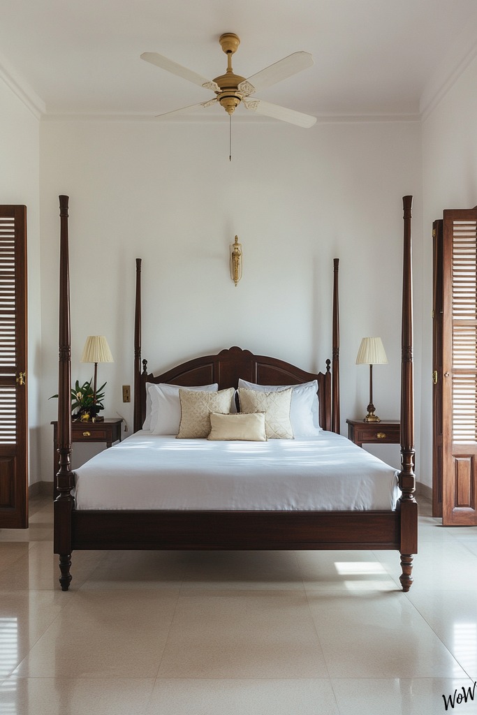 For the best colonial look, add white wooden shutters and keep your decor simple but elegant.