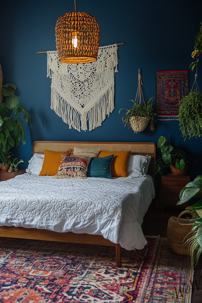 Remodel your space into a free-spirited haven with deep indigo as your base color. You’ll love how this rich shade pairs beautifully with macramé wall hangings, patterned tapestries, and an array of colorful throw pillows.