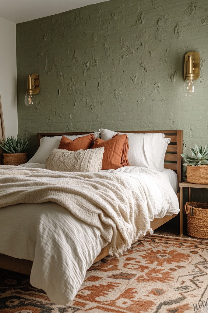 It’s like having a peaceful garden retreat right in your bedroom! Whether you’re going for a modern farmhouse look or a cozy boho vibe, sage green plays nicely with tons of other colors and styles.